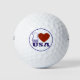 Esta bola de golf patriótica muestra mi original 'I Heart The USA'. El diseño rojo, blanco y azul es perfecto para los golfistas y es un gran regalo para cualquier ocasión.