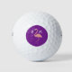 Damas de moda bolas de golf personalizadas con iniciales de nombres de monograma que puedes personalizar en línea y elegante flamingo rosa sobre un fondo morado de bonito. Diseñado para las mujeres que disfrutan jugando al golf como ejecutivas o con amigos y familiares.