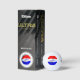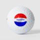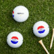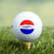 This flag of the Netherlands design golf ball is white and dimpled, with a diameter of at least 1.680 inches (42.67 mm) and a mass no more than 1.620 ounces (45.93 grams). The dimples on the surface are crucial for aerodynamics, reducing drag and allowing the ball to travel farther. Golf balls are designed with multiple layers to optimize distance, spin, and feel. Holland flag design golf ball