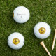 Luxury elegant monogram initials personalized golf ball with a gold glitter golf ball background.