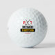 Baloncesto de golf blanco personalizado con nombre en un estilo de letra audaz, para un elegante golfista... un sencillo diseño monocromático negro y rojo, con clubes de golf cruzados, sus iniciales y su nombre... una genial idea de regalo para ese jugador de golf elegante en tu vida.