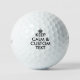 Gracioso mantener la calma Titleist Pro V1 caja de regalo de bola de golf. Haz que tu humorística se mantenga tranquila y continúe con la cita. Diseño de tipografía moderna con corona negra. Presente personalizado para golfistas y aficionados al golf. Envase de 3 ó 12. También disponible en otras buenas marcas como Callaway, Wilson y Taylor Made.