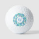 Bolas de golf florales tropicales de color azul monograma. Fácil de cambiar el monograma. Patrón acuático moderno y vibrante.