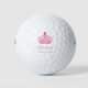 Las bolas de golf de la princesa monograma incluyen una corona de princesa rosa con joya de corona y gota de nombre monograma que puedes reemplazar con cualquier nombre. Un regalo de golf femenino divertido diseñado para mujeres que aman jugar golf y quieren identificar sus bolas con su marca única.