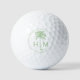 Estas modernas bolas de golf de inspiración costera cuentan con un palmetto de palma verde clásico sobre blanco con un monograma que se puede personalizar con las iniciales que se elijan.