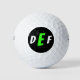 Nunca más pierda su pelota con estas bolas de golf monograma de tres iniciales. Este diseño presenta una fuente moderna en blanco y verde sobre un fondo negro.