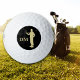 Esta peculiar pelota de golf tiene una silueta dorada de oro de los viejos tiempos, de pie con su club sobre su hombro. Su monograma está a su lado en oro a juego. El texto y la imagen se colocan sobre un fondo negro dramático. Asegúrese de ver los productos de accesorios de golf que coinciden en nuestra tienda. *Gracias a ChiliPapers por la imagen de silueta usada en este diseño.