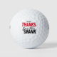 Estas divertidas bolas de golf de tipografía "No Gracias por el Shank" son el regalo perfecto para cualquier golfista que haya visto donde un mal golpe (por lo general) les llega! Diseño y copia © W.H. Sim. Todos Los Derechos Reservados. Ver más en zazzle.com/wordsofwhimsy