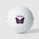 This butterfly design golf ball is white and dimpled, with a diameter of at least 1.680 inches (42.67 mm) and a mass no more than 1.620 ounces (45.93 grams). The dimples on the surface are crucial for aerodynamics, reducing drag and allowing the ball to travel farther. Golf balls are designed with multiple layers to optimize distance, spin, and feel. Purple butterfly design golf ball