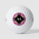 Tartán rosa, amarillo dorado y azul. Patrón sin foco. Monograma personalizado.