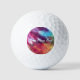 Un paquete de 3 bolas de golf de valor, con una imagen de un diseño de tinte, = (tinte#10) = (arte por P.J.M.), = colores=marrón, morado oscuro, rosado, azul claro, Naranja, amarillo, verde, blanco personalizado, "tu nombre aquí" =blanco, color, texto