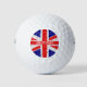 This flag of Great Britain design golf ball is white and dimpled, with a diameter of at least 1.680 inches (42.67 mm) and a mass no more than 1.620 ounces (45.93 grams). The dimples on the surface are crucial for aerodynamics, reducing drag and allowing the ball to travel farther. Golf balls are designed with multiple layers to optimize distance, spin, and feel. Union Jack flag design golf ball