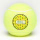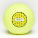 Bolas de tenis diseñadas con mi ilustracion de pimientos rojos y verdes con un sol zia en el centro de ellas.