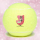 Estas pelotas de tenis tienen dos elegantes gatos de estilo medio siglo, en blanco y negro, enrollados juntos en una silla rosa vintage en la parte delantera y trasera.