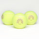 Bolas de tenis personalizadas impresas con un nombre o texto personalizado en una letra femenina de escritura femenina y moderna de bonito y un sencillo monograma de racquet de tenis. Cualquier jugadora de tenis femenina apreciaría el elegante aspecto de estas modernas bolas de práctica monogramadas.