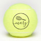 Bolas de tenis personalizadas impresas con un nombre o texto personalizado en una letra femenina de escritura femenina y moderna de bonito y un sencillo monograma de racquet de tenis. Cualquier jugadora de tenis femenina apreciaría el elegante aspecto de estas modernas bolas de práctica monogramadas.