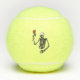 Estas pelotas de tenis tienen un esqueleto blanco espeluznante sosteniendo una rosa roja profunda sobre un tallo con hojas verdes sobre su cabeza en el frente y en la espalda.