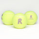 Bolas de tenis monogramadas. Letra R estrellas gráficas monográficas y letras de flores en un juego de bolas. Un regalo único para un chica que tiene el nombre de pila empezando por la letra R. Otras letras de arte monograma y productos con nombre coincidentes están disponibles. Personaliza con tu propio nombre, actualmente lee Rachel Richardson. Diseño original de cartas gráficas de Sarah Trett para www.mylittleeden.com en Zazzle.