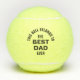Una divertida pelota de tenis personalizado para tu padre con "Esta pelota pertenece al mejor padre de la historia" y un mensaje personalizado como "Feliz cumpleaños", "Feliz Día del Padre", "Feliz Navidad", etc., seguido de una firma xoxo de nombres.