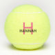 Nombre personalizado y carta inicial Pelota de tenis con un Monograma en una moderna letra clásica sans serif en un estilo minimalista simple rosa y negro perfecto para que cualquier jugador de tenis practique o muestre con keepsakes.