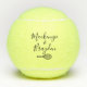 Bolas de tenis personalizado personalizadas impresas con nombres personalizados o cualquier texto de texto único en una letra de guión moderna y un simple monograma de racquet de tenis. Cualquier pareja o equipo de dobles que jueguen al tenis apreciaría estas modernas pelotas de práctica monogramadas.