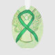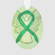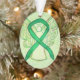 El ornamento de la fiesta de ángel de la guarda presenta la pintura de un ángel de cinta de conciencia verde. El arte de la cinta de ángel de la conciencia verde se puede personalizar con mensajes personalizados para hacer ornamentos de gran causa o colgantes para recaudadores de fondos, Navidades de concientización o regalos de vacaciones, u otros eventos o ocasiones especiales.