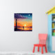 Obra de una figura solitaria que mira al horizonte como cuerpos celestes de intercambio nocturno y diurno. Una imagen poderosa de una figura con una silueta de paraguas contra una vibrante puesta de sol sobre el agua. Con un cielo dramático con el sol poniente y la luna, este cuadro capta un momento de tranquila belleza y reflexión. El cielo es un lienzo dramático de naranjas cálidos, amarillos y violetas donde el sol se sumerge por debajo del horizonte, mientras que por encima, el azul fresco del crepúsculo revela la luna y estrellas dispersas. Un árbol crudo y desnudo se para como testigo silencioso a la izquierda, sus ramas alcanzan hacia el cielo vibrante. Esta pintura invita a una sensación de contemplación tranquila, maravilla y la belleza conmovedora de los momentos transitorios en tu hogar. Esta pieza se puede personalizar, imprimir y o descargar.