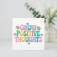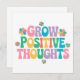 Aprende una mentalidad más brillante con esta elocuente tarjeta de saludo "Grow Positive Thoughts", con flores brillantes y coloridas y letras motivacionales. Esta alegre obra de arte fomenta la atención, el amor propio y el crecimiento personal, lo que lo convierte en un regalo perfecto o un recordatorio personal para mantenerse positivo y difundir buenas vibraciones. Este diseño de inspiración floral aporta belleza y aliento a la vida cotidiana.