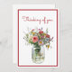 Ilustracion acuático con flores rosas, rojas y azules de bonito en un frasco. Este arte botánico de ilustracion es perfecto para un simple saludo de Thinking of You, pero usted puede cambiar el texto a su saludo preferido. Gráfico asistido por IA adquirido con uso comercial. Pintura: DreamCafeArt