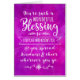 Hágale saber a alguien que estás pensando en ellos y qué bendición tienen en tu vida con este elegante diseño de tipografía de estilo letras a mano. Delante de la tarjeta aparece un mensaje en blanco, "Eres una bendición maravillosa para todos los que te conocen y esparces amabilidad y alegría a donde vayas". El diseño aparece en el fondo de color morado con textura digital. Adentro incluye este mensaje, pero puede ser personalizado para que se ajuste a sus propias necesidades: Pensando en usted y qué asombroso regalo de Dios es llamarte mi amigo. ¡Te aprecio y admiro cada vez más cada día!