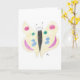 Tarjeta de saludo retrato 5x7 - Sólo pensé que me pasaría a saludar - Feliz flauta amarilla (mariposa) llegando para enviar un mensaje feliz. Hágale saber a alguien que están en tu mente y en tu corazón dejándoles esta nota amistosa. El dibujo original es un lápiz de color en papel, escaneado y colocado en la tarjeta.