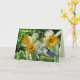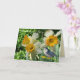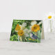 Tarjeta de felicitación con nuthatch y daffodils en la parte delantera.