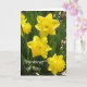 Vibrantes y coloridos daffodils amarillos tarjeta de bienvenida "Pensando en ti" con mensaje interno: Estuviste en mis pensamientos hoy. Puede personalizar el mensaje. Ahorra en conjuntos de 10 o más en caja y mantente a mano. ¡Coordine con el correo de daffodil!