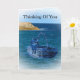 Cat Thinking Of You Card (El pensamiento del gato de tu carta), en este pensamiento de tu carta aparece un gato que se ha colado de su canasta en el océano, se ha disfrazado para parecerse al mar, front dice que te extrañaremos, dentro de la carta dice que los despedidos son siempre difíciles