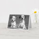 Esta divertida forma de pensar de tu tarjeta de felicitación tiene una imagen en blanco y negro de dos perros dálmatas con manchas de cachorro sentados en una canasta de mimbre.