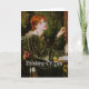 Una señora joven, mira fijamente posiblemente en espacio en una imagen del vintage posiblemente por un miembro de la fraternidad del Pre-Raphaelite. El texto, "pensando en usted" se exhibe a través de su vestido verde oscuro. Todo el texto es adaptable pero el interior de la tarjeta se deja en blanco para su propio mensaje personal.