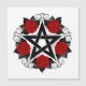 Pentagrama negro con estampado, decorado con rosas rojas florecientes con hojas sobre fondo blanco. Estilo tatuaje.
