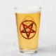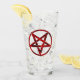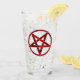 Pentagrama rojo, invertido, texturado en círculo, sobre fondo blanco. Símbolo oculto. 666