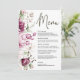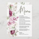 Peonies Pink Burgundy Floral Romántico Menú Boda