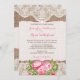 Tecleo "personalizar él!" ¡para moverse/ajuste el texto y los colores! ¡Para el boda rústico/del país! Una manera elegante de invitar a la familia y a amigos a un boda rústico/del país. Ofreciendo la arpillera y el cordón con los rosas bonitos y los peonies rosados que hacen juego invitaciones, tarjetas nupciales del fiesta, franqueo, sobres y más también disponible en mi tienda. ©2015 Weddings*n*Whimsy