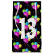 Coloridas ramas de globo de 13 años con confeti fiesta sobre fondo negro. Se puede cambiar el color de fondo. El texto se puede editar para cualquier cumpleaños de edad.
