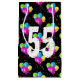 Boquetas de globo de 55 años coloridas con confeti fiesta sobre fondo negro. Se puede cambiar el color de fondo. El texto se puede editar para cualquier cumpleaños de edad.