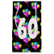 Boquetas de globo de 60 años coloridas con confeti fiesta sobre fondo negro. Se puede cambiar el color de fondo. El texto se puede editar en cualquier cumpleaños de edad.