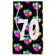 Boquetas de globo de 70 años coloridas con confeti fiesta sobre fondo negro. Se puede cambiar el color de fondo. El texto se puede editar en cualquier cumpleaños de edad.