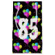 Boquetas de globo de 85 años coloridas con confeti fiesta sobre fondo negro. Se puede cambiar el color de fondo. El texto se puede editar para cualquier cumpleaños de edad.