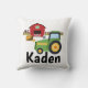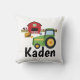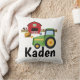 Una almohada adorable personalizada acogedora para su poco granjero futuro, termina con un tractor verde y un granero rojo.