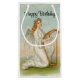 Un ángel de bonito con arpa, aparece en esta bolsa de regalo de cumpleaños. Ángel aparece a ambos lados de esta bolsa, con el mensaje "Feliz Cumpleaños". ¡Una forma encantadora de regalar un pequeño regalo a la familia y a los amigos! Usa papel de tejido para llenar esta bolsa con eso también.