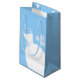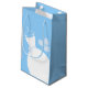 bolso de regalo con temática de novia en tonos azules con un vestido boda estilizado y flores sobre un fondo azul. Un diseño de personalizable para que puedas personalizar con tu propio texto, imágenes e ideas.