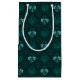 Aquí tenemos una preciosa bolsa de regalo con un patrón de corazones de bloqueo decorativo verde azulado y de carbono sobre un fondo de color verde azulado profundo. Este bolso hará una adición fabulosa a un regalo para tus amigos y familia.