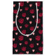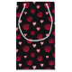 Aquí tenemos una preciosa bolsa de regalo con un patrón de rosa y corazones rosados estampados en un oscuro fondo de carbón vegetal. Este bolso hará una adición fabulosa a un regalo para tus amigos y familia.